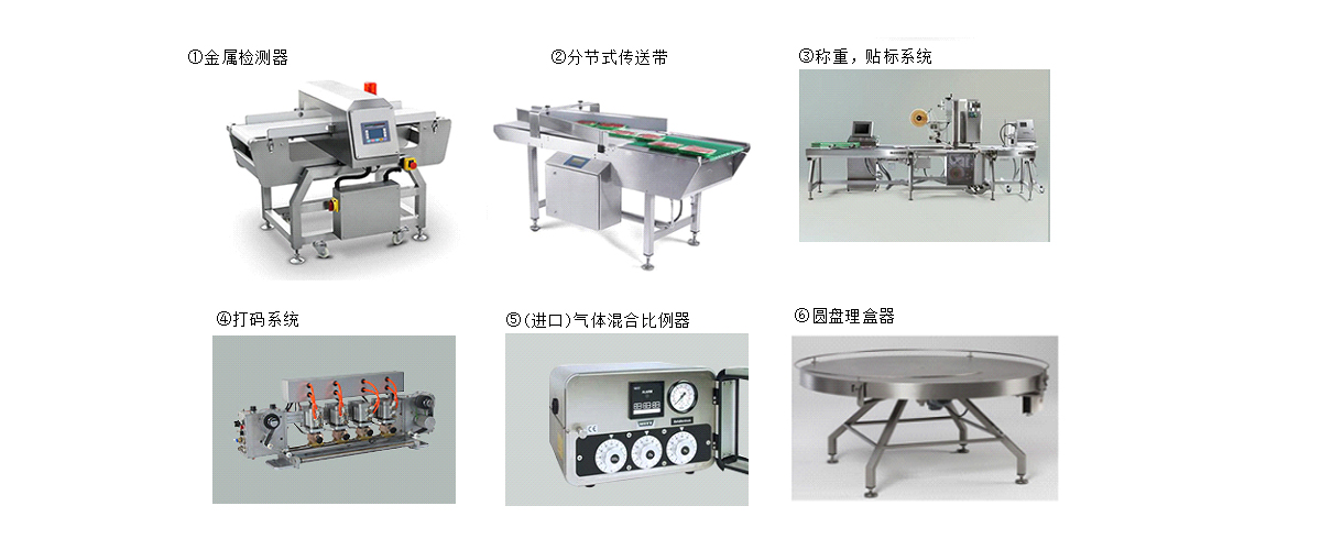 3、连续气调包装机等形式包装均可生产,且可根据需要配置多种配套装置(如:自动落托盘-机器人投料-自动包装-分节式传送带-异物检测-称重一贴标等)以拓展自动化生产线。节省人力资源,快捷方便,可满足高产能生产包装需求。