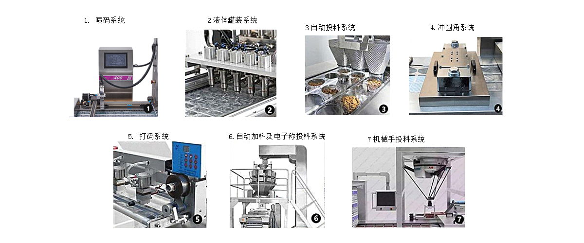 辅助设备如:机械手、自动灌装设备、电子称、输送带、喷码机、贴标机、紫外杀菌、金属检测等各类配套设备,可降低及节省大量作业人员。